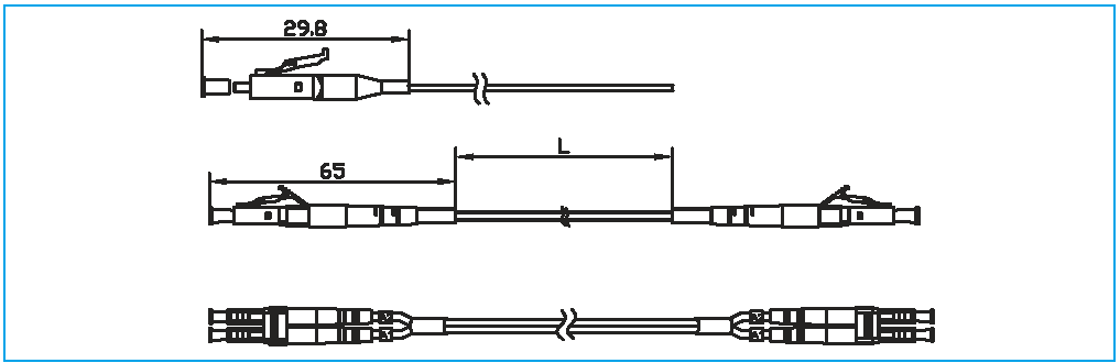 LC連接頭用直徑為1.25un插芯,是標準插芯尺寸的一半, LC連接頭可用在單模APC、PC、UPC和多模3.0mm、2.0mmPC產品上,LC連接有標準的尾套適用于直徑為0.9mm的光纜。連接頭同時可用于單芯、雙芯(雙芯夾)產品上。