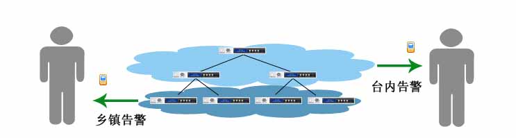 分層報警功能可以將設備進行區域劃分,如:臺中心、鄉鎮A、鄉鎮B 等等。根據分化好的區域,可